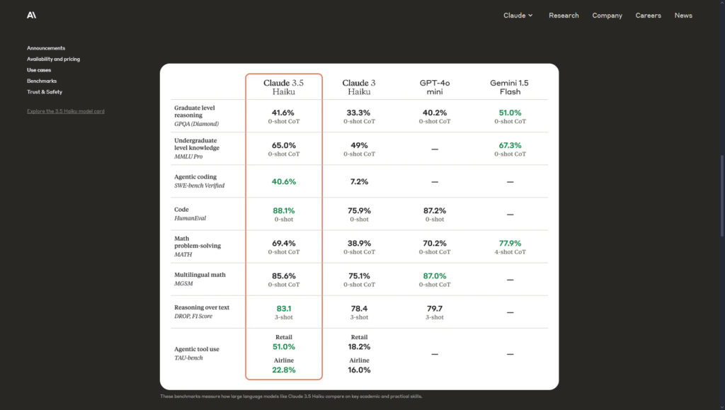 النسخة الجديدة Haiku مثيرة للإعجاب أيضاً. هي تقريباً تضاهي أداء نموذجهم السابق الأعلى (Claude 3 Opus) لكن بتكلفة أقل وسرعة أعلى. مثالية للشركات اللي تحتاج ردود سريعة أو تتعامل مع كميات كبيرة من البيانات.